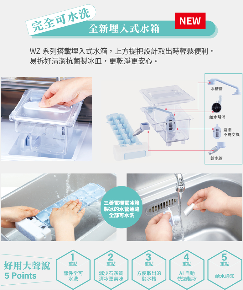 全水洗結構製冰流程,抗菌易拆好清潔。
