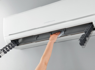三菱電機獨家 DBC 奈米複合塗層,髒污不留痕結合 Easy Clean 易拆清設計,空調常保潔淨高效節省 30% 電費有感!