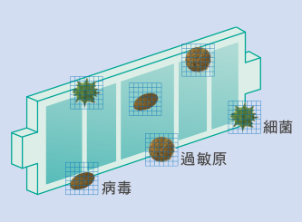 靜電吸附過敏原,濾網內含酵素成份能有效抑制病毒、細菌達99.9%。