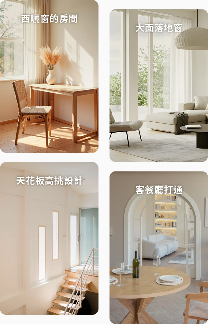 不過光看坪數還不夠,像是房屋類型(獨棟透天、大樓樓層高低)、建築結構(木造、鋼筋混凝土)、坐落方位,以及空間環境(大面落地窗、天花板挑高設計、客餐廳打通等),都會影響冷房或暖房效果。若想要更精準選出最適合你家的機型,建議洽詢空調銷售門市,或請專人協助選機更安心!