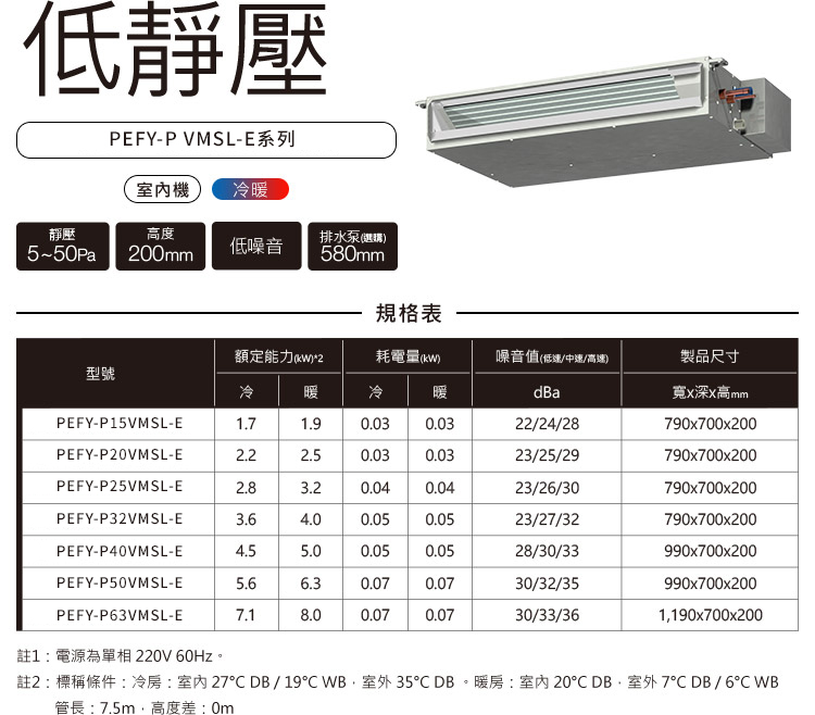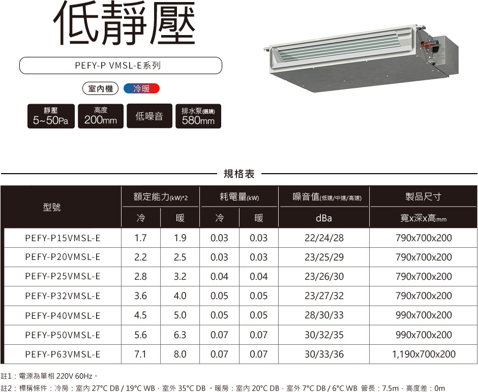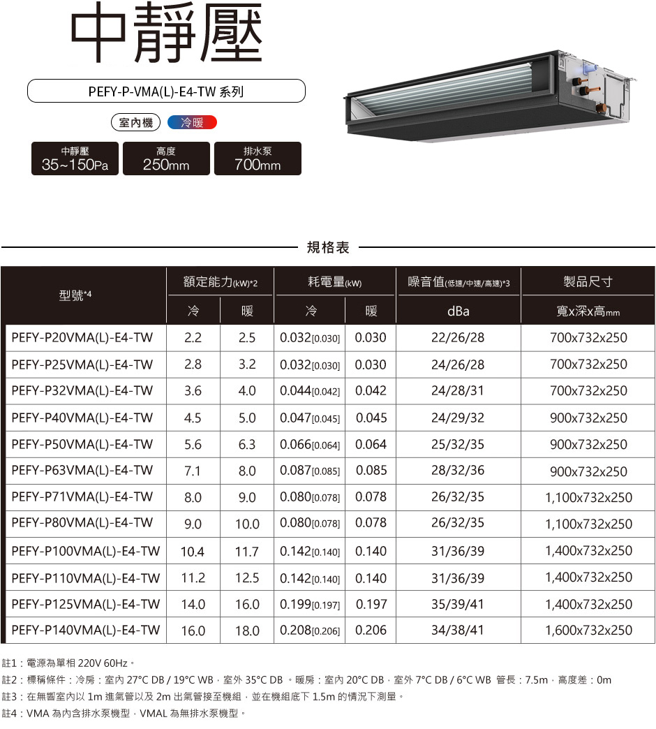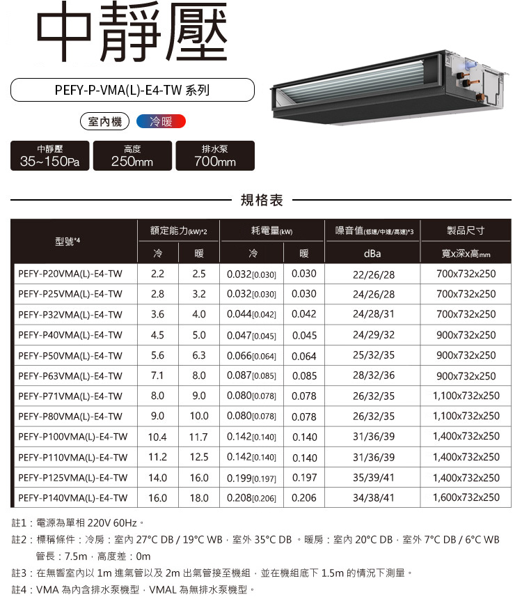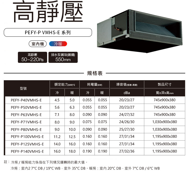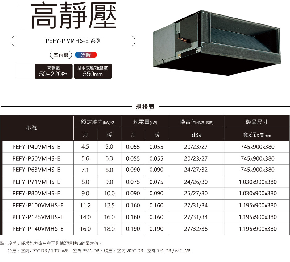 最大機外靜壓可達 220Pa。本機的所有維護工作,包含風扇檢查及風扇馬達拆卸,都可從單一邊的檢修口來進行。