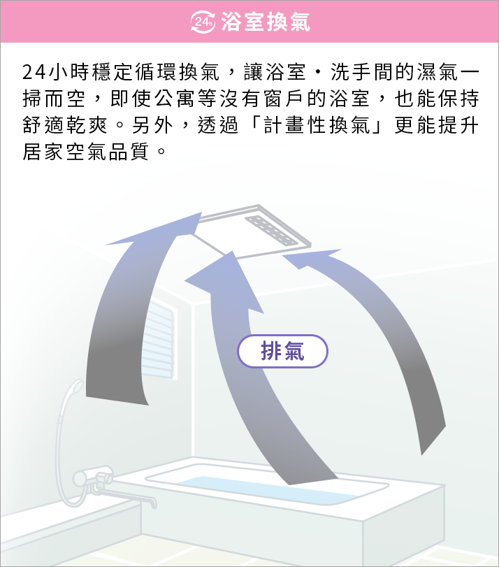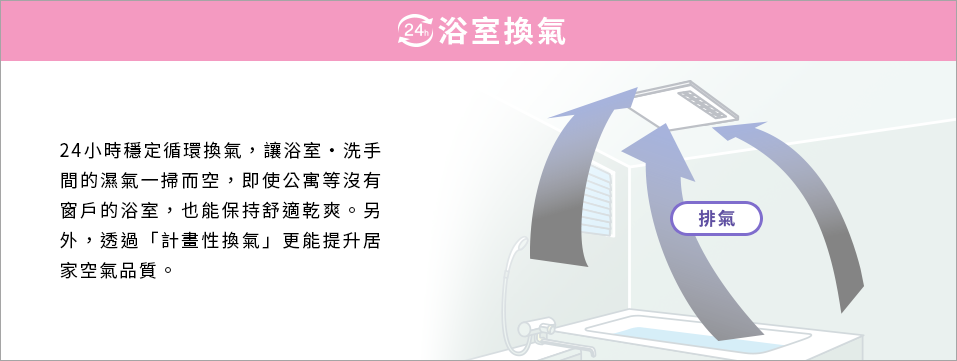 ※沐浴時等如欲暫停24小時換氣運轉時,按一下「24小時換氣」鍵,可暫停1小時。