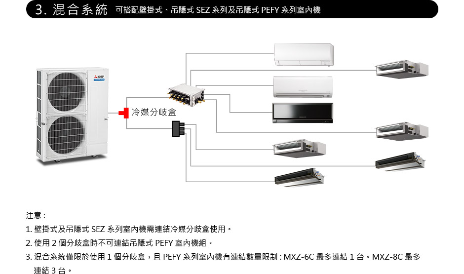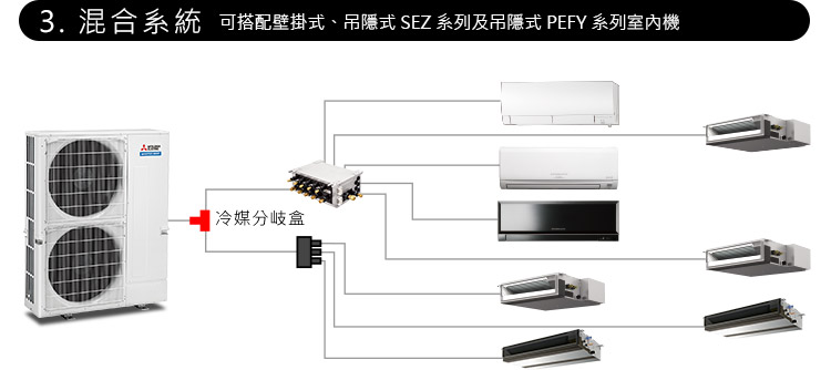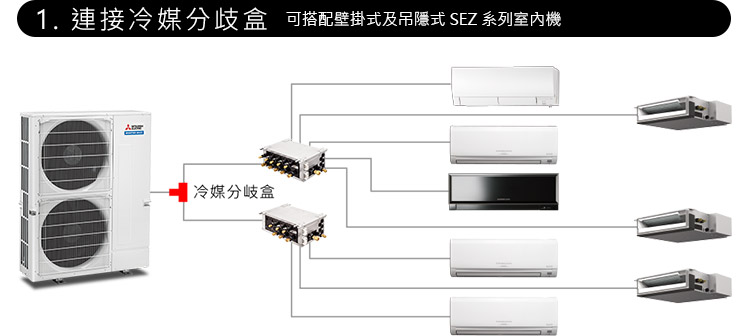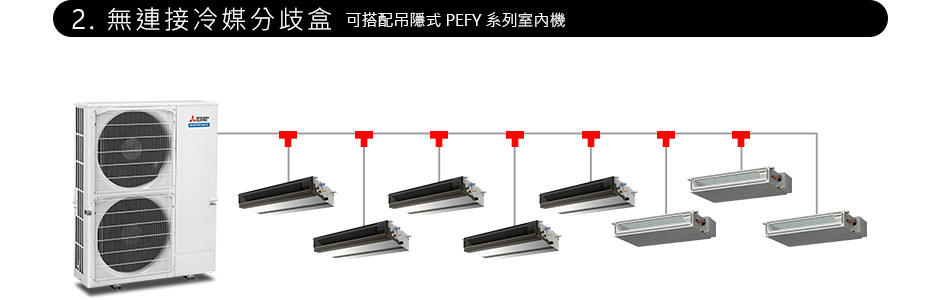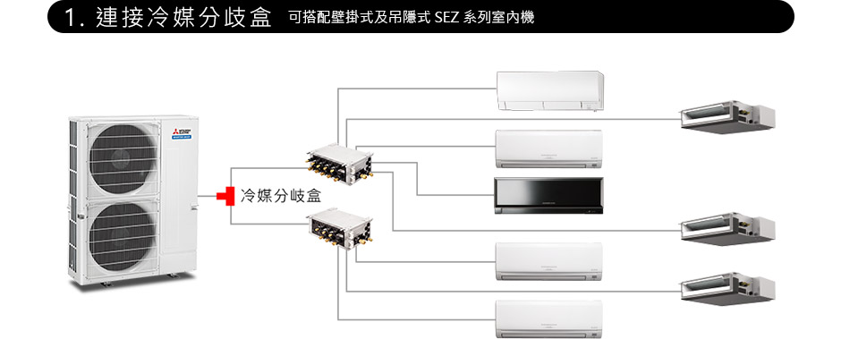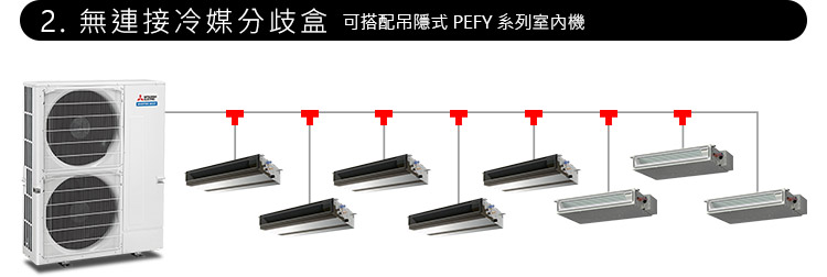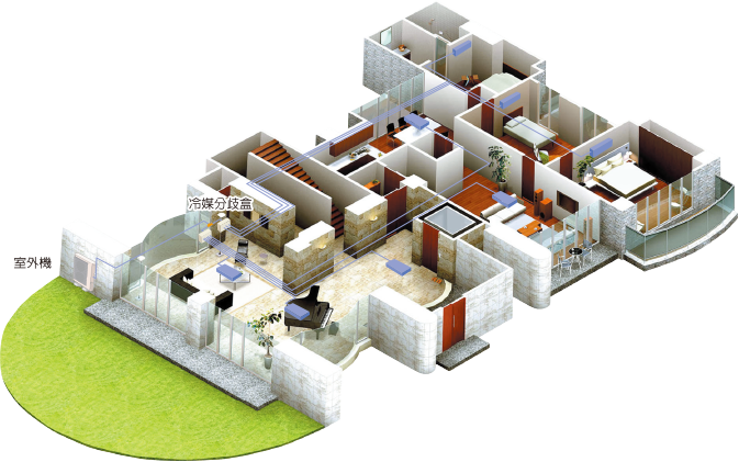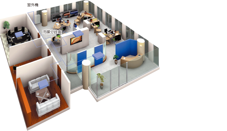 多聯變頻空調機種採用了能防止過冷或過熱的先進技術,節省能源且達到了真正的舒適環境。