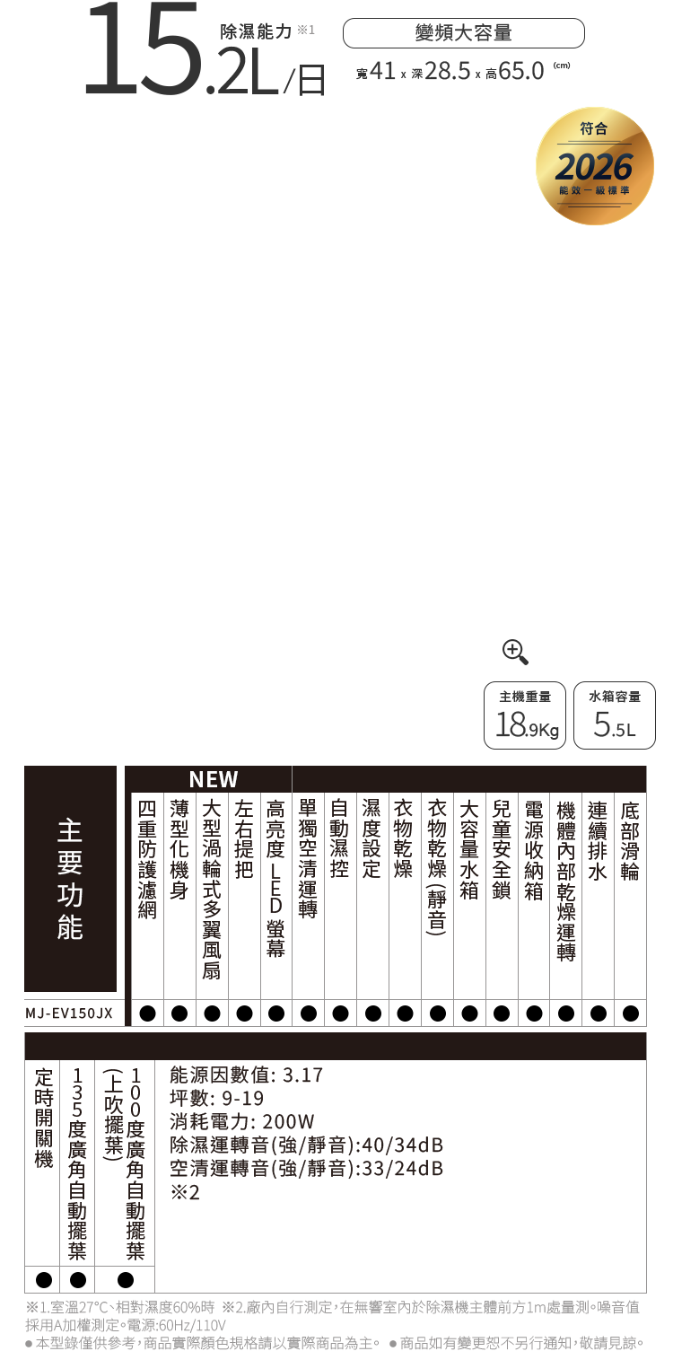 獨家研發「內部乾燥功能」在除濕機運轉結束後啟動此功能即可將熱交換器的水滴蒸發,避免黴菌滋生!